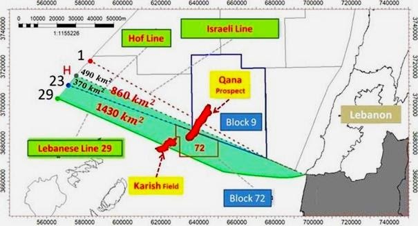 تتركز معظم ثروة لبنان النفطية في كتل في الجزء الجنوبي من البلاد. هذه الكتل محل نزاع بين لبنان واسرائيل. لم يتم ترسيم الحدود البرية والبحرية بين لبنان وإسرائيل ، والتي كانت في حالة حرب منذ قيام دولة إسرائيل عام 1948.