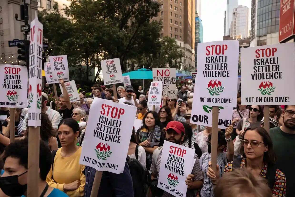 يدفع مايك ليفنسون ضد السياسات منذ 40 عاما، ويعتقد الآن أنه وصل إلى مرحلة ما، وان هناك تغير والساسة يرونه، وهذا يخيفهم، كان يحمل لافتة كُتب عليها: “أوقفوا عنف المستوطنين” حيث شارك في مسيرة يوم الخميس في نيويورك.