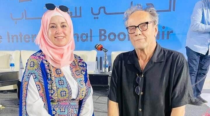 وفي إحدى اللحظات الإنسانية التي تزداد وضوحاً مع الغياب، أستعيد لقائي به على هامش معرض الكتاب في رام الله عام 2023. وبعد ندوة كان فيها متحدثاً أساسياً وبعنوان 🙁 المشهد الفلسطيني وإثراؤه درامياً وسينمائياً ) لم يكن اللقاء طويلًا، لكنه كان مكثّف الدلالة.