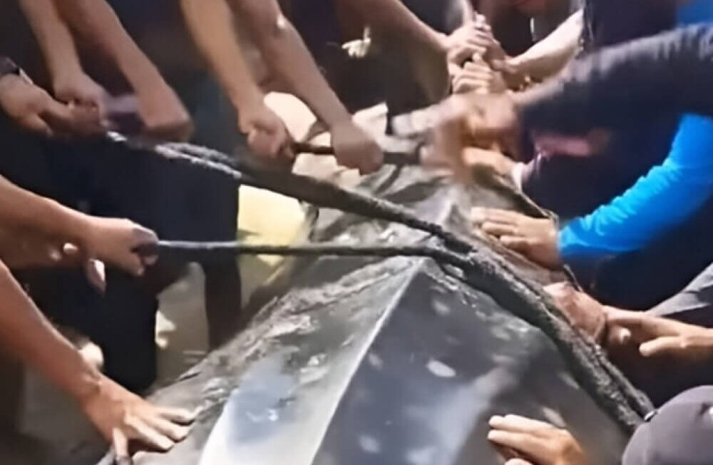 حوت قذفه البحر الى شاطئ يعرف معنى الفقد،