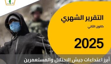 اعتداءات جيش الاحتلال والمستعمرين في الأراضي الفلسطينية المحتلة خلال شهر كانون ثاني 2025